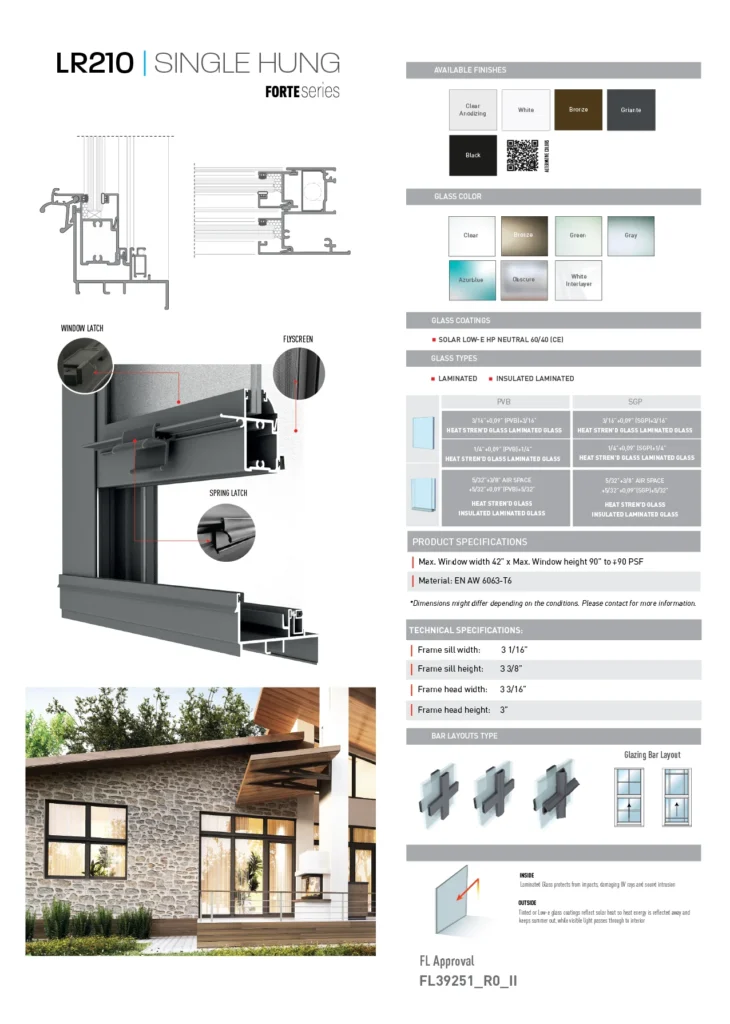 The Single Hung LR-210 window by Linshia offers a sleek, space-saving design with a fixed top sash and a smoothly operable bottom sash. Built for durability and energy efficiency, it provides excellent ventilation, easy maintenance, and a clean modern look—making it a perfect choice for both residential and commercial spaces.